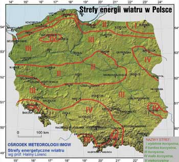 Since the early 1990's, the researchers of the IMGW have conducted detailed studies of wind energy in Poland, both on the regional and the local level. The Institute constantly improves the methods of assessing wind energy ressources, especially on the local level. The well-known and systematically updated authored "Map of wind energy zones in Poland" constitutes a basic source of information that is necessary at the first stage of assessment by potential investors in wind turbines. It is exactly for this reason that it has been made available for purchase from the IMGW and in specialized publications. These are the only two sources where the map is posted as an authored publication. It is regularly updated after each 5-year measurement period and the measurements are a basis for studies on trends and changes in wind structure in a given period. The map constitutes the first credible piece of information that allows investors to determine if using wind for power generation is feasible in the region of their interest. The "Map of wind energy zones in Poland" covers the records of wind speed measurement in the years 1976 - 2005, conducted at the hight of 30 m over the ground surface and in open spaces.