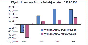 wyniki finansowe Poczty Polskiej w latach 1997-2000.